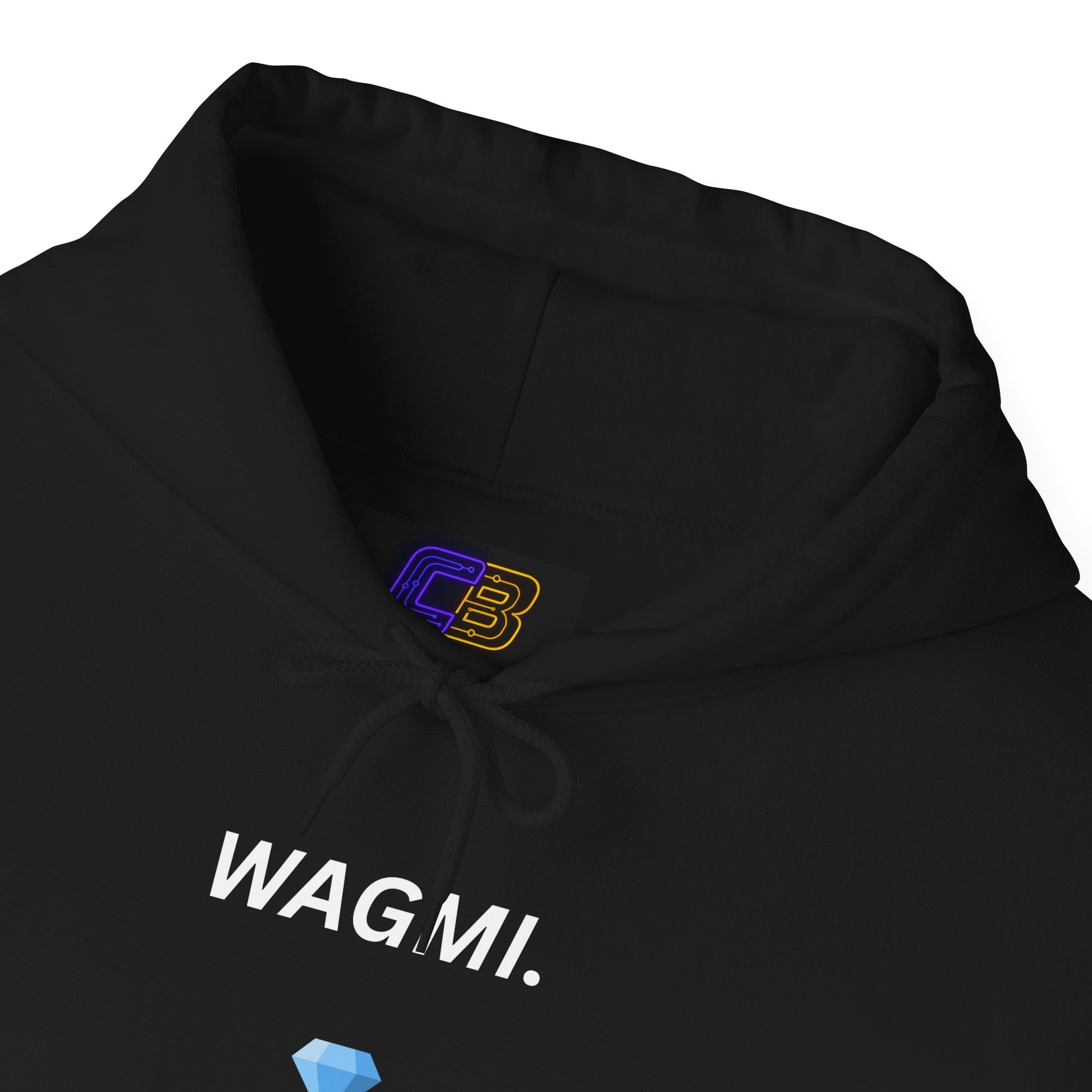 This black hoodie features bold white typography and a subtle blue diamond gem that catches the light just right. Minimalist drip for the degen who’s been through the trenches and still holding strong.
